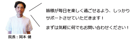 ※土曜日の△= 8:30~15:00 ※定休日:水曜 午後、 土曜 午後、 日曜、 祝日 【予約可】 施術時間外のご予約も承けたまわりますので、お気軽にご相談ください。 保険外診療、マッサージもできます。 なんでも気軽にお問い合わせください。
